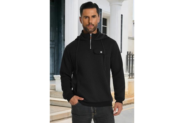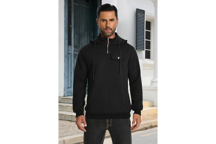 MLANM Men's Hoodie Quarter Zip Sweatshirt Long Sleeve Waffle Pullover with Pocket Casual Drawstring Hoody Tops