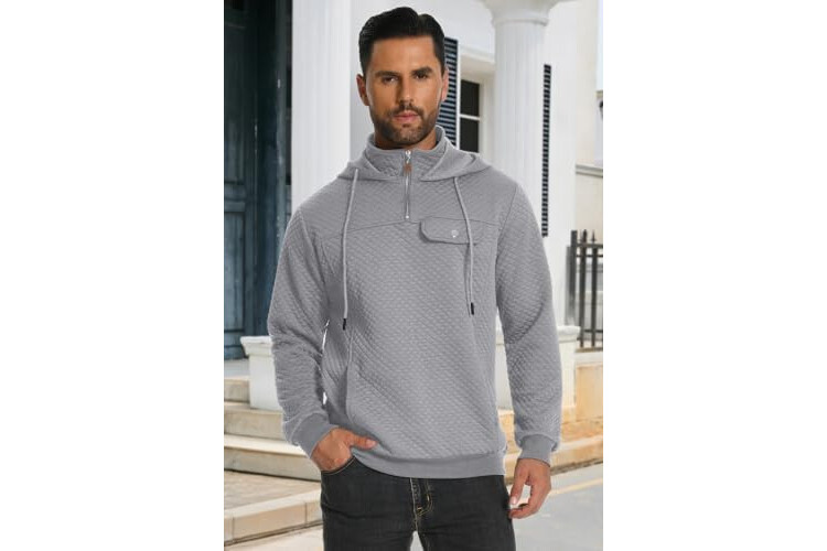 MLANM Men's Hoodie Quarter Zip Sweatshirt Long Sleeve Waffle Pullover with Pocket Casual Drawstring Hoody Tops