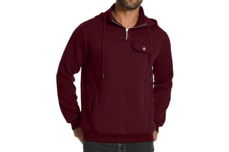 MLANM Men's Hoodie Quarter Zip Sweatshirt Long Sleeve Waffle Pullover with Pocket Casual Drawstring Hoody Tops