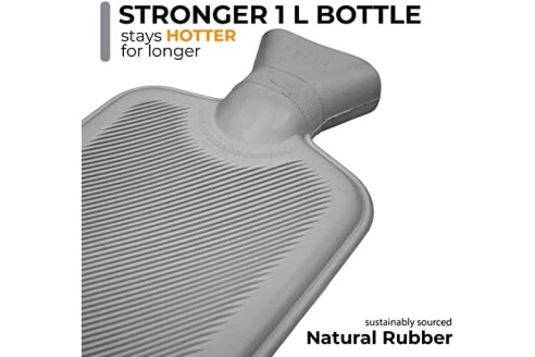 THICK QUALITY 1 LITRE HOT WATER BOTTLE - Made from Natural Rubber (Vegan Friendly) British Standard BS1970:2012 Does Not Leak!