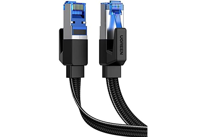UGREEN Ethernet Cable 1M, Cat 8 Internet Cable Flat High-Speed 40Gbps 2000Mhz Network Cable, Gigabit Braided RJ45 LAN Cable Patch Cord Compatible for PC/Laptop, PS5, Xbox, Modem, Router, Switch, TV