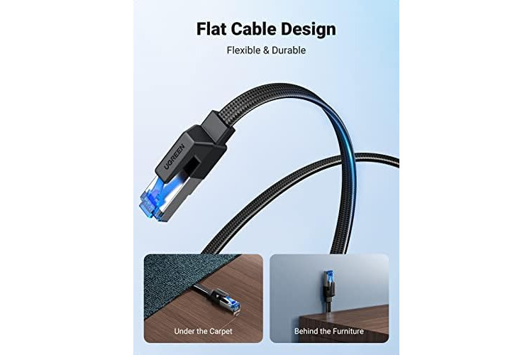 Flexible Flat Design: UGREEN Flat Ethernet cable adopts a uniquely flat and thin design, which is more adaptable to install under the door, through the window, hidden under the carpet, or lined up against the wall, It's very suitable for indoor wiring to save a lot of space along your house and office.