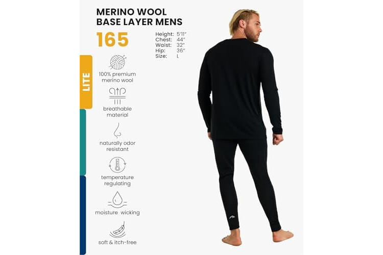 Merino.tech Merino Wool Base Layer Men Set - Merino Thermal Underwear Mens Top and Bottom Lightweight, Midweight, Heavyweight