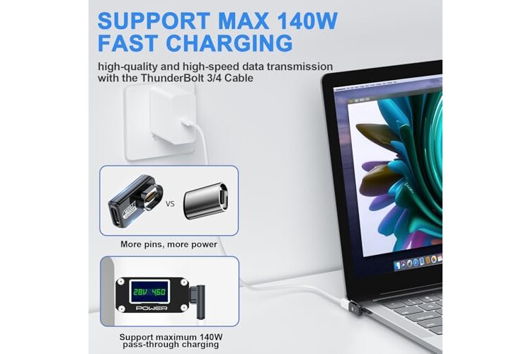 140W Fast Charging: This type c magnetic adapter can work up to 140W and totally provide the amount of ...