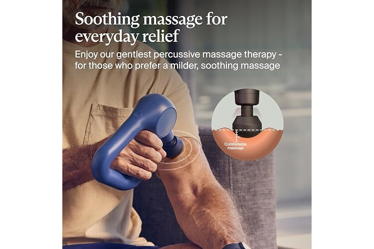 Our Easiest-to-Use Massage Gun Device: With scientifically proven percussive massage therapy, Relief is a comfortable and light, one-button deep tissue massager that provides fast and effective relief from aches, pains, tension and stiffness.