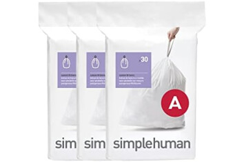 simplehuman CW0250 code A Custom Fit Bin Liner Bulk Pack, White Plastic (3 Pack of 30, Total 90 Liners)