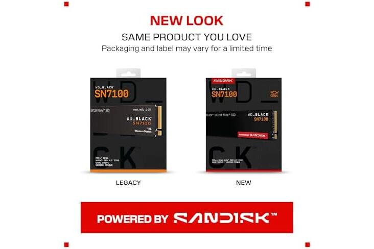 WD_BLACK SN7100 2TB NVMe SSD, M.2 2280, Read speeds up to 7250 MB/s, Write Speed up to 6,900 MB/s, Next Gen TLC 3D NAND, WD_BLACK DASHBOARD, Up to 1,200TBW, For Laptops, handheld gaming devices