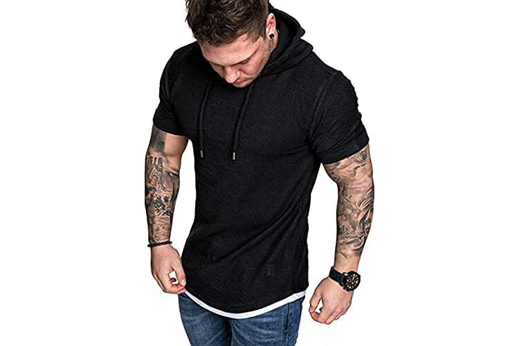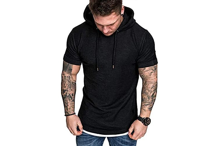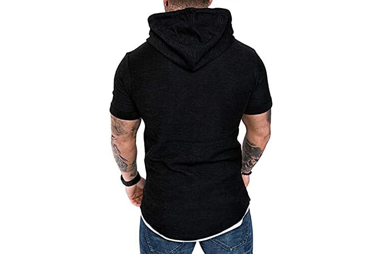Mens Short Sleeve Hoodie T-Shirt-Leisure Fitness Short Sleeve for Men