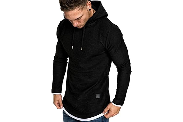 Mens Short Sleeve Hoodie T-Shirt-Leisure Fitness Short Sleeve for Men