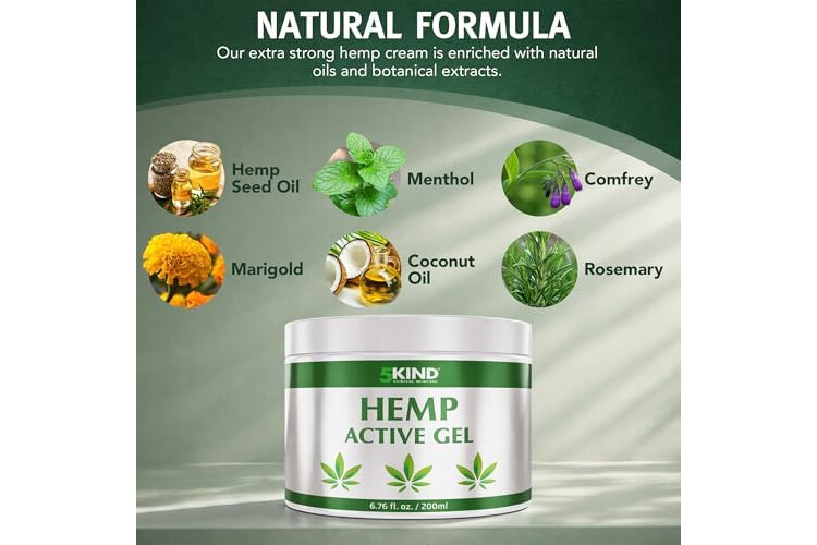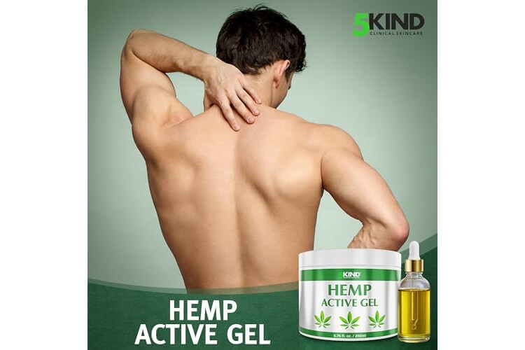 5kind Hemp Active Gel 200ml - High Strength Formula - Natural Cooling Massage for Back, Muscles, Feet, Knees, Neck & Shoulders - Hemp Gel Muscle Rub Rich in Natural Extracts.