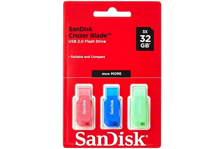 SanDisk 32GB Cruzer Blade USB Flash Drive , Blue/Pink/Green, 3count(Pack of 1)