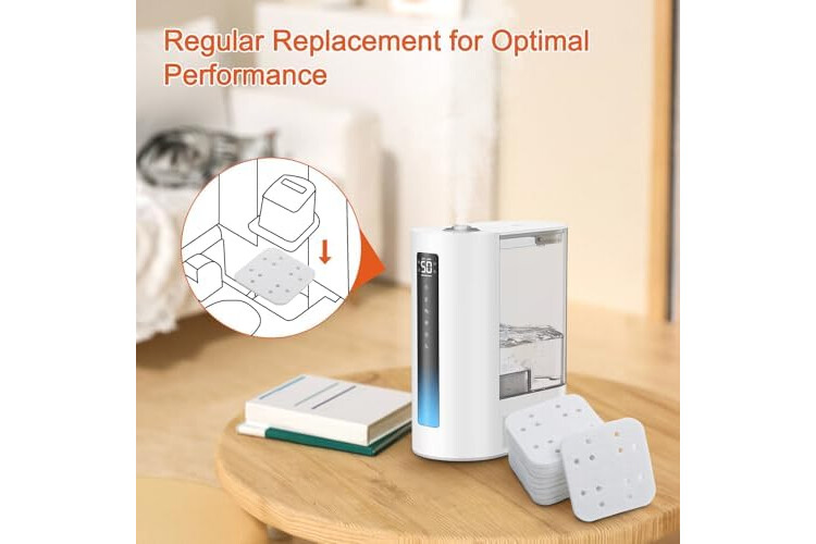 [RECOMMENDED REPLACEMENT SCHEDULE] To keep your humidifier running smoothly and quietly, we advise replacing these absorption pads every three weeks for consistent performance.