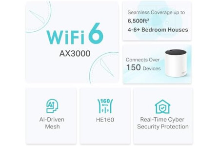 • Boosted Seamless Coverage - Seamless mesh Wi-Fi coverage up to 6,500 ft2 (3-pack)