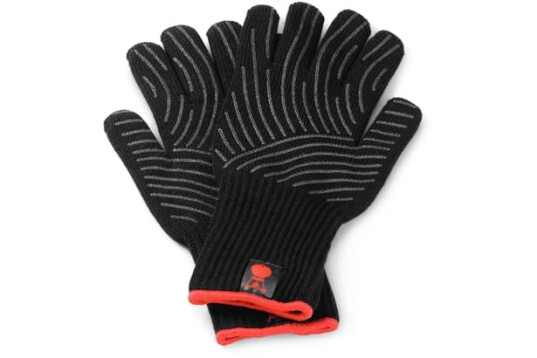 WEBER PREMIUM MEDIUM/SMALL HEAT RESISTANT GLOVES: Heat-proof gloves to protect your hands from a hot barbecue, with a silicone palm for gripping your tools - ideal for outdoor cooking and grilling