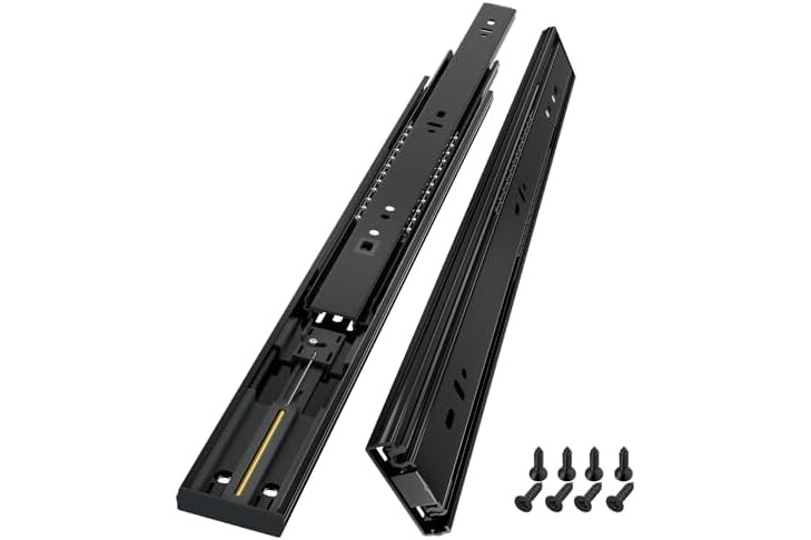 【Side Mount Drawer Runner】mounting screws included. Length: 450mm(18 inch). You can choose the size of the rails according to the depth of the drawer. The length of the slide should be ≤ the length of the drawer. Installation clearance: 12.7mm(Each).