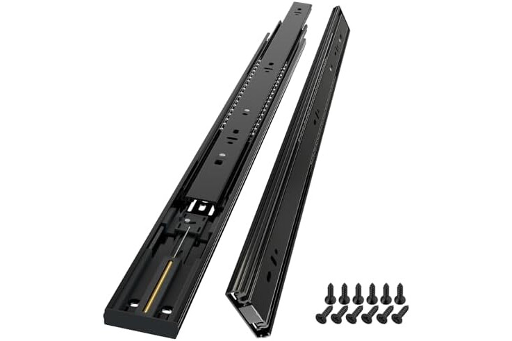【Side Mount Drawer Runner】mounting screws included. Length: 600mm(24 inch). You can choose the size of the rails according to the depth of the drawer. The length of the slide should be ≤ the length of the drawer. Installation clearance: 12.7mm(Each).
