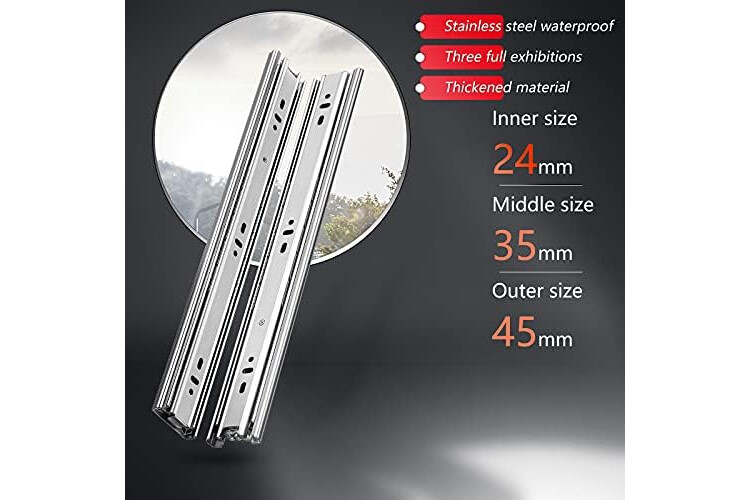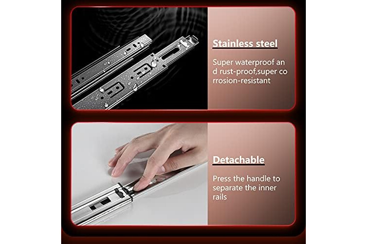【Stainless Steel Drawer Runners】Made of 1.2mm high-density high strength stainless steel, stainless steel drawer runners Anti-rust ability is 2 times higher than ordinary slide rails, load capacity 45 kg
