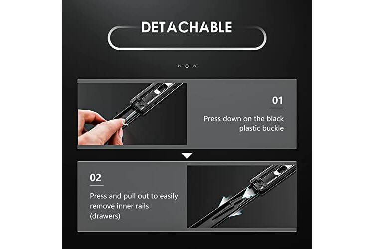 【Ball Bearing Drawer slides & Detachable 】 Solid steel ball to ensure smooth opening and closing of the slides.The inner rail can be detached by pressing the buckle for eas...