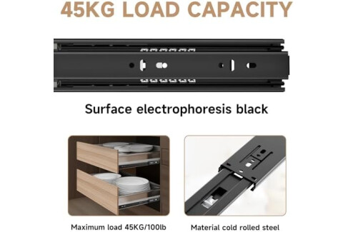 【Ball bearing drawer slides & Full extension】AOLISHENG drawer slides are made of 1.2mm high-quality cold-rolled steel, the material is 1.2 times the thickness of ordinary slides.The bearing capacity can be as high as 45kg.b...