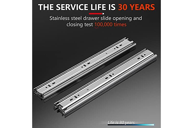 【Stainless Steel Drawer Runners】Made of 1mm high-density high strength stainless steel, stainless steel drawer runners Anti-rust ability is 2 times higher than ordinary slide rails, load capacity 45kg