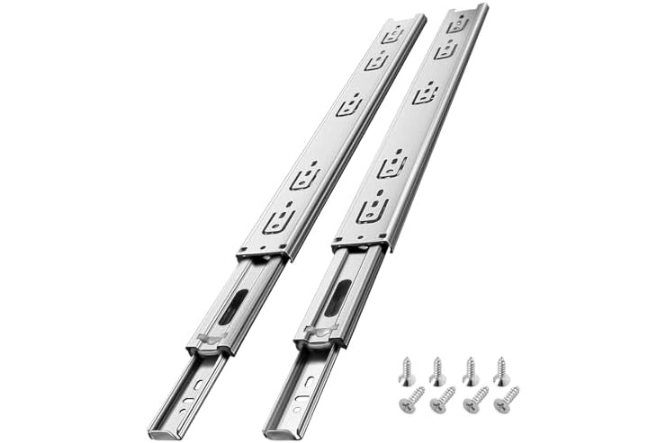 【Side Mount Drawer Runner】Quantity: 1 pair, mounting screws included. Length: 600mm(24 inch). You can choose the size of the rails according to the depth of the drawer. The length of the slide should be ≤ the length of the drawer. Installation clearance: 12.7mm(Each).