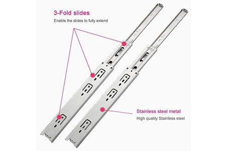 【Stainless Steel Drawer Runners】Made of 1mm high-density high strength stainless steel, stainless steel drawer runners Anti-rust ability is 2 times higher than ordinary slide rails, Load Capacity 45 kg