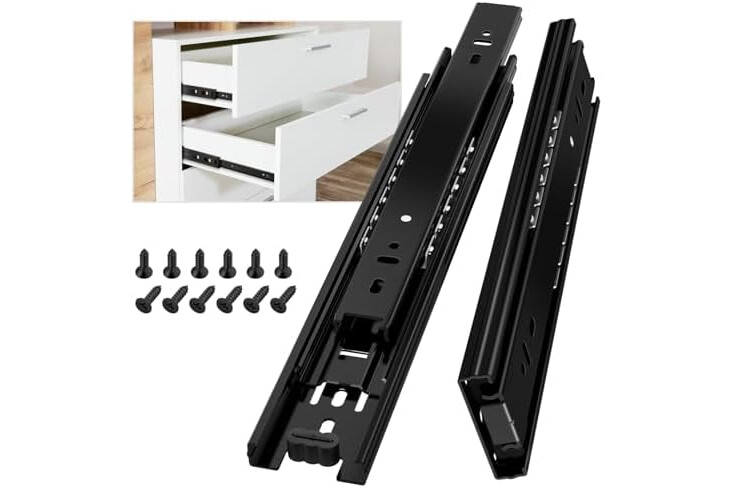 【Durable and Strong】 drawer runners are made of 1mm high-quality Q235 cold-rolled steel, width: 45mm, hold 100 pounds, 40 pounds more than regular runners