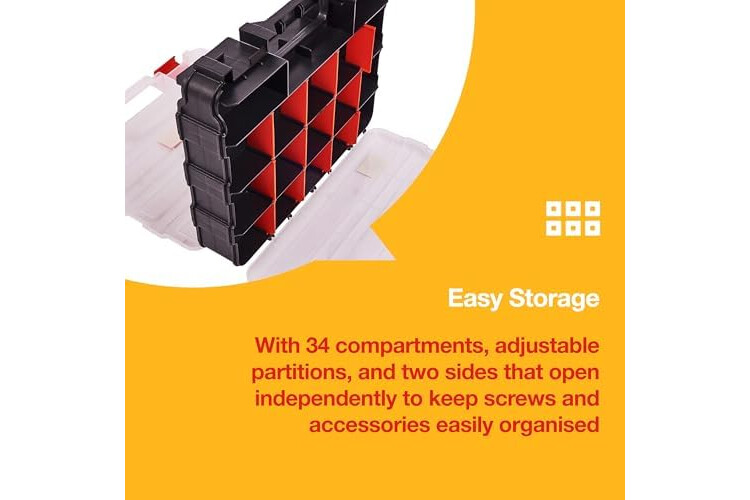VERSATILE: With 34 compartments, adjustable partitions and two sides that can be opened independently, it is ideal for storing and organising a wide range of items