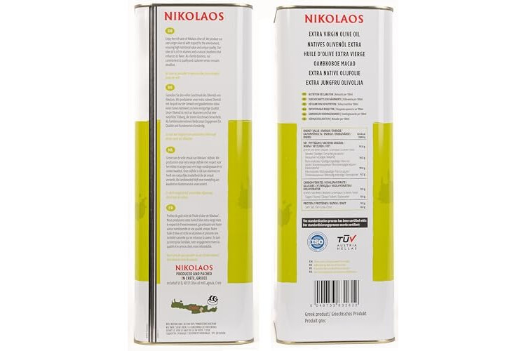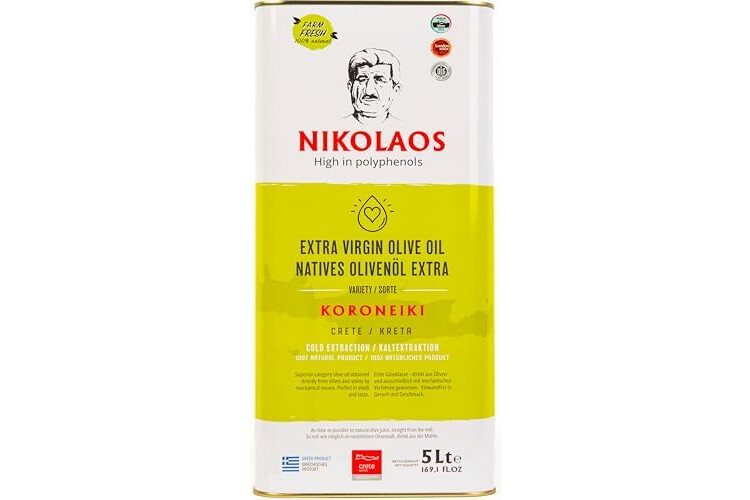 Olive Oil 5L from Crete, Greece "NIKOLAOS" – Premium Quality, Extra Virgin, Cold-Pressed, Rich in Polyphenols, Low Acidity. New Harvest: Dec. 2024 – Feb. 2025. Best Before: Nov 2026 – Jan 2027