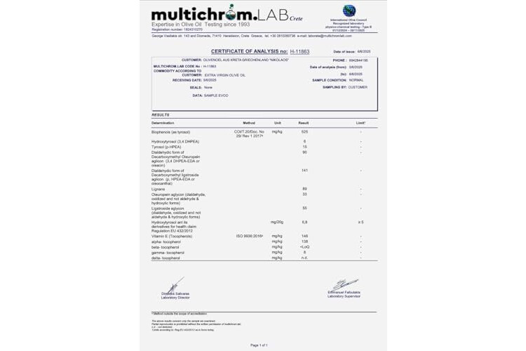 Olive Oil 1L from Crete, Greece "NIKOLAOS" – Premium Quality, Extra Virgin, Cold-Pressed, Rich in Polyphenols, Low Acidity. New Harvest: Dec. 2024 – Feb. 2025. Best Before: Nov 2026 – Jan 2027