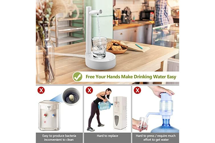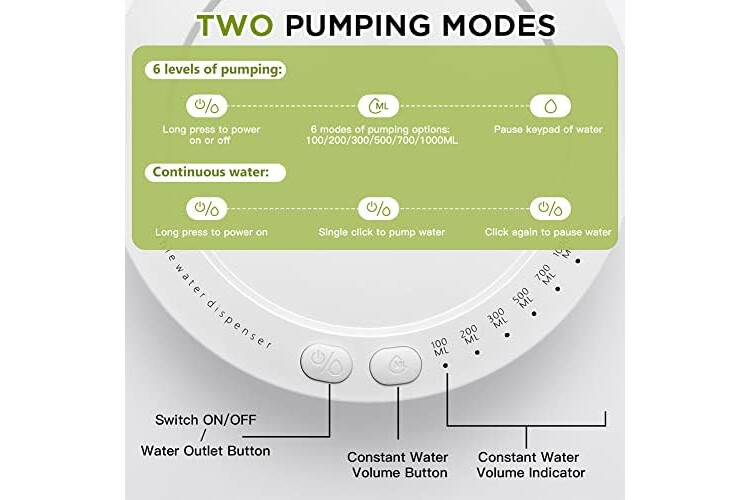 đ°ăSMART DRINKING WATER PUMPăDesktop water bottle dispenser has two modes of quantitative water discharge and continuous water discharge. Among them, there are 6 kinds of capacity options with indicator lights for quantitative water outlet, including 100/200/300/500/700/1000ml. If you need more water, you can choose the continuous water mode.