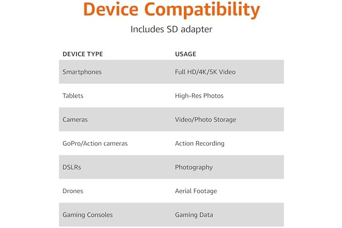 512GB Micro SD Card compatible with smartphones, tablets, cameras, GoPro/action cameras, laptops, desktop computers, DSLRs, drones, gaming consoles and more. This Micro SD card is not compatible with the Nintendo Switch 2