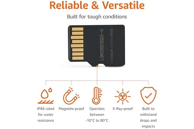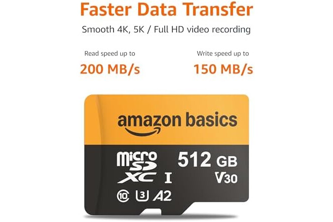 Read speed up to 200MB/s. Write speed up to 150MB/s. For optimal smartphone experience includes UHS-I, U3, Class 10 and A2 speed classes. Note: to achieve 200MB/s read speeds (above UHS-I) this Micro SD Card needs Amazon Basics Micro SD Card Reader USB C 3.0 B0DB4YQPL1 (sold separately).