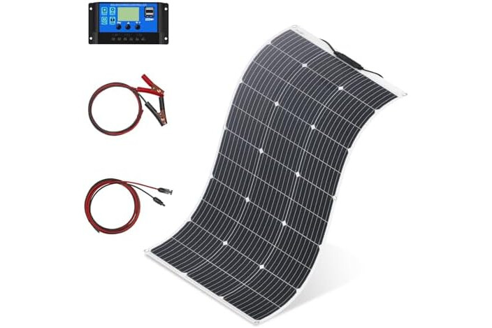 100W Flexible Solar Panel Monocrystalline Solar Charge with 10A Controller USB Output to Charge 12V Batteries (Vented AGM Gel) for Motorhome, Caravan, Camper, Boats, Roofs