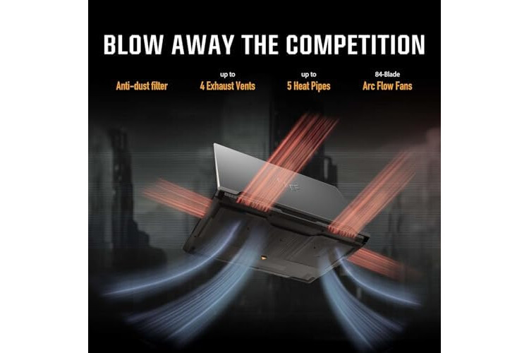 • Advanced Cooling System: Stay cool under pressure with 84-blade Arc Flow Fans, five heatpipes, four exhaust vents, and anti-dust filters — all working together to reduce heat and noise during long gaming sessions
