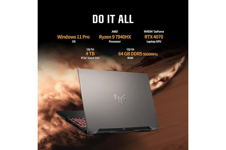 ASUS TUF Gaming A16 Laptop, AMD Ryzen 9 7940HX(Beat i9-13900H), NVIDIA RTX 4070, 16" 2560x1600 QHD+ 165Hz, 64 GB DDR5, 8 TB SSD, Windows 11 Pro, Office Pro, FA607PI-AS94