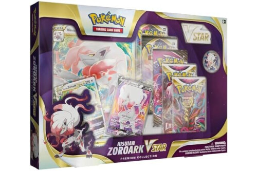 • This set includes 1 etched foil card featuring Hisuian Zoroark VSTAR, 1 etched foil card featuring Hisuian Zoroark V, 1 oversize foil card featuring Hisuian Zoroark VSTAR and 5 Pokémon TCG booster packs