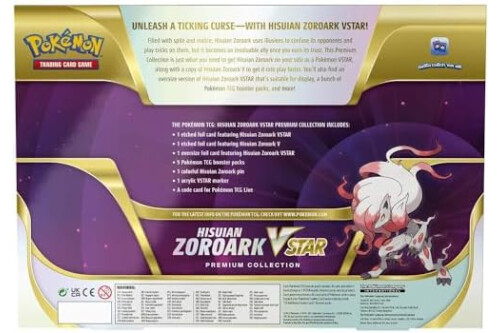 • You'll also get 1 collector’s colorful Hisuian Zoroark pin, 1 acrylic VSTAR marker and a code card for Pokémon TCG Live.