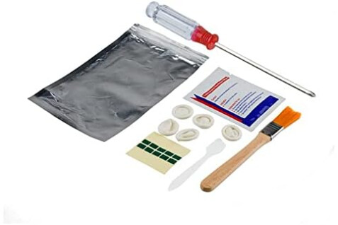 Package contains: 1x thermal pad 80 x 80 x 0.2 mm, 1x Phillips screwdriver, 1x cleaning cloth, 1x spatula, 1x cleaning brush.