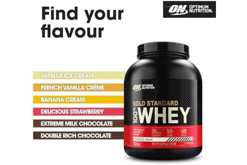Optimum Nutrition Gold Standard 100% Whey Protein Powder for muscle building and recovery, Cookies and Cream, 896g, 28 servings, Package May Vary