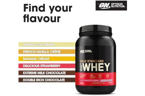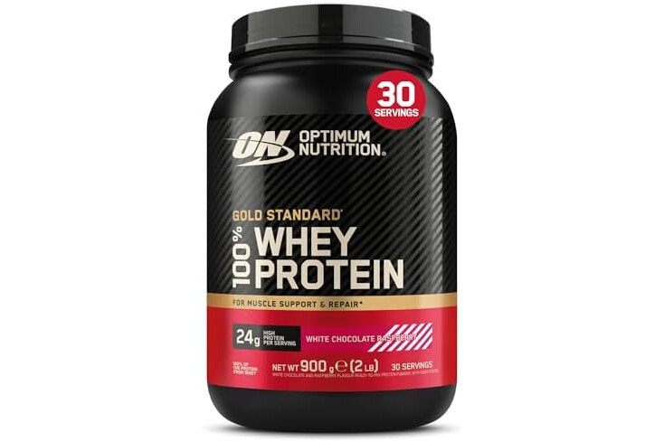Optimum Nutrition Gold Standard 100% Whey Protein Powder for muscle building and recovery, White Chocolate Raspberry, 900g, 30 servings, Package May Vary