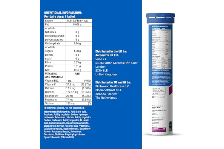 • ✓ Vitamins B12 & C contribute to normal energy-yielding metabolism and to the reduction of tiredness & fatigue