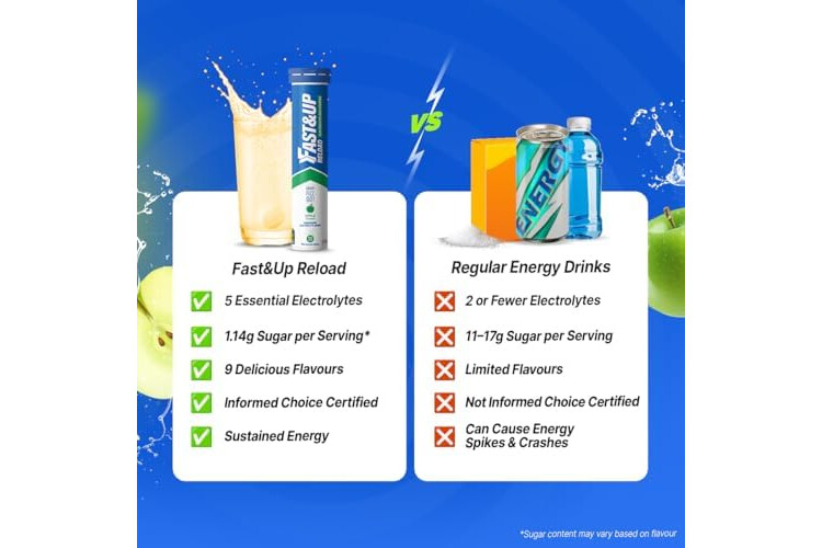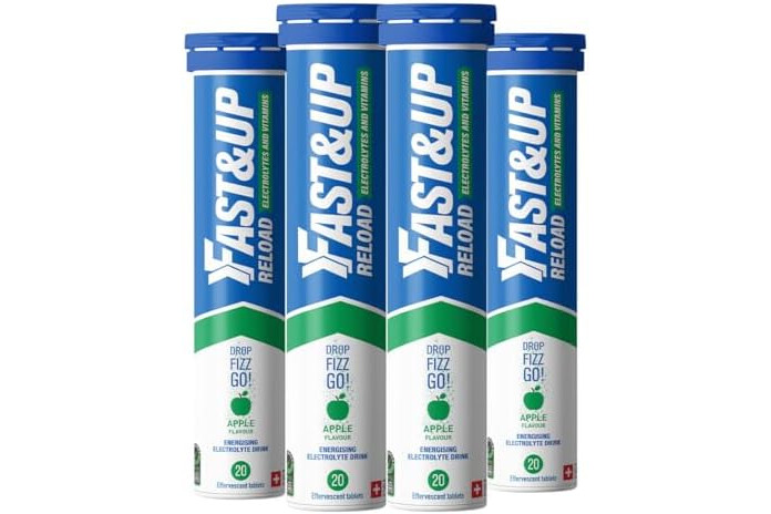 Fast&Up Reload –Apple Flavour – 80 Effervescent Tablets – Instant Electrolytes for Rapid Hydration & Energy - Added Vitamin C & B12 for Performance, Wellbeing, Travel & Recovery – Vegan