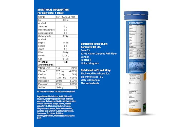 ✓ Vitamins B12 & C contribute to normal energy-yielding metabolism and to the reduction of tiredness & fatigue