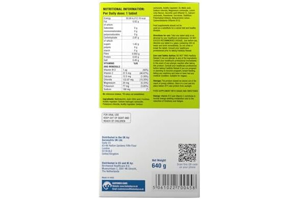 ✓ Vitamins B12 & C contribute to normal energy-yielding metabolism and to the reduction of tiredness & fatigue