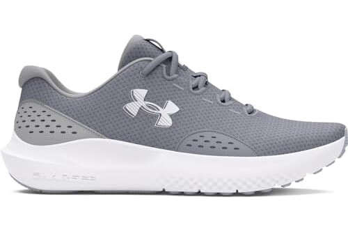 Under Armour Men's Charged Surge 4, Comfortable Men's Runners with Breathable Mesh Upper Design, Durable and Responsive Running Shoes,Steel / Mod Gray / White,12.5