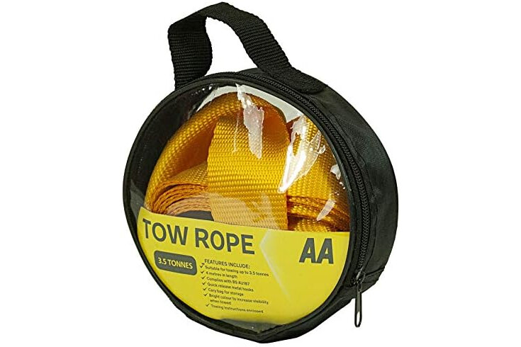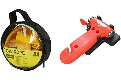 AA 3.5T 4 m Heavy-Duty Tow Rope AA6202 – Yellow Strap-Style Towing Belt for Car Breakdowns Other Vehicles up to 3.5 Tonnes & Emergency Car Window/Glass Hammer Seatbelt Cutter Rescue Tool 6240