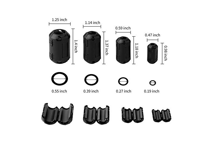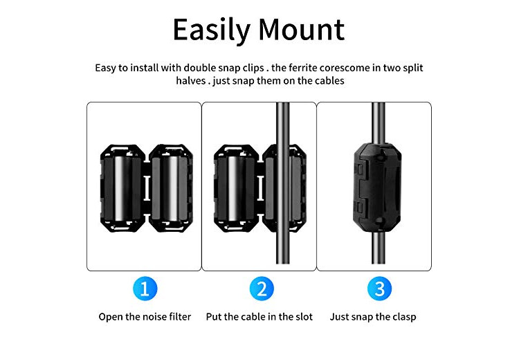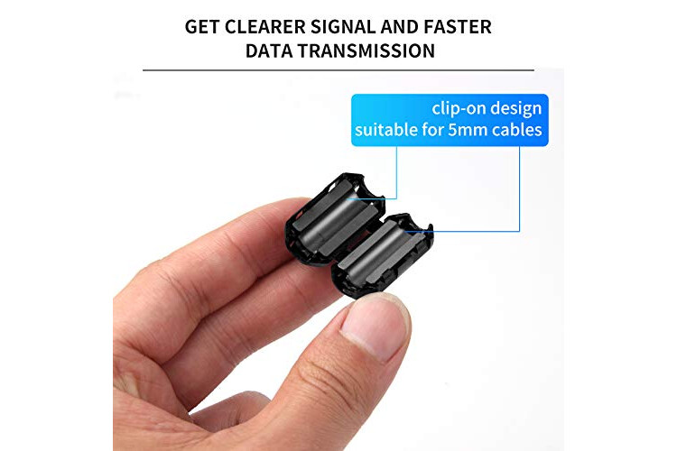 Function: 1.Reduce electro-magnetic interference and improve signal integrity; 2.Helps reduce EMI on AC power lines; 3.Easy to install with double snap clips