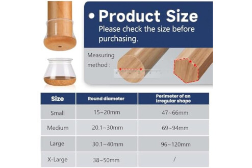 【Applicable shape and size】The Large size fits a round foot diameter is 30.1-40mm, Please measure the size of your furniture legs before ordering.