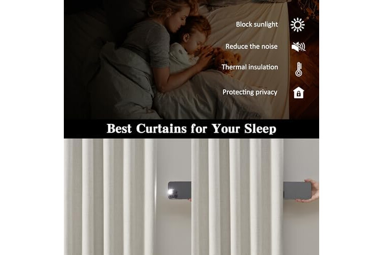 Full Blackout: RAIN CITY blackout linen curtains feature a 100% blackout lining, ensuring opulence without compromising functionality. This unique combination of softness and thickness effectively blocks out sunlight and UV rays, creating a truly secluded and...